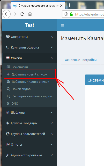 Создадим новый Список. Для этого нажмите на кнопку “Добавить новый Список” в меню в левой части экрана.